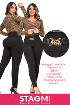 Legging moldeador con faja interna integrada que proporciona soporte abdominal y realce. Confeccionado en materiales elásticos y de alta calidad para mayor libertad de movimiento. Pretina ancha en corte corazón que define la cintura sin incomodidades.