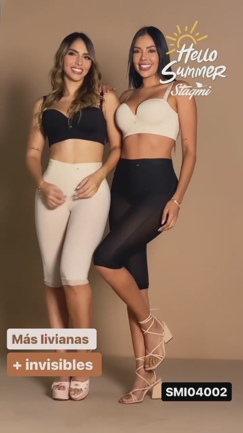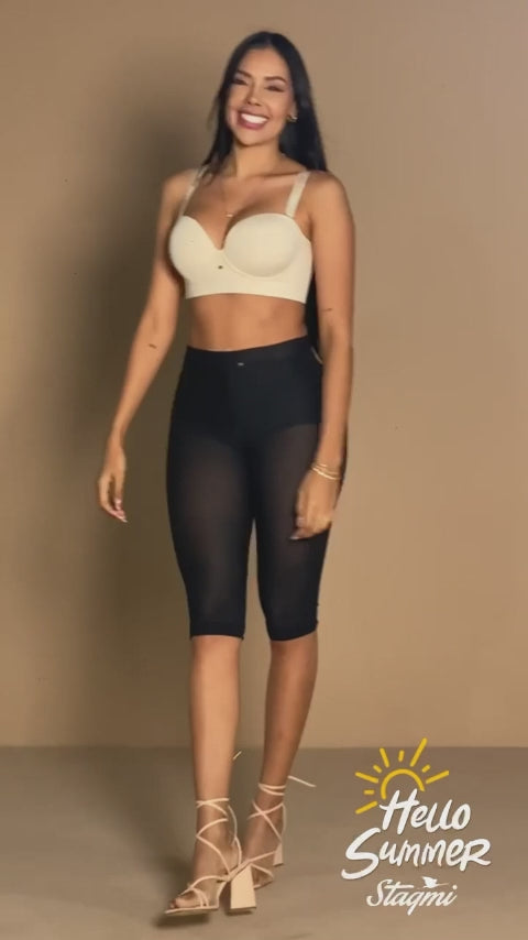 • Largo de pierna con control progresivo que moldea muslos y caderas.