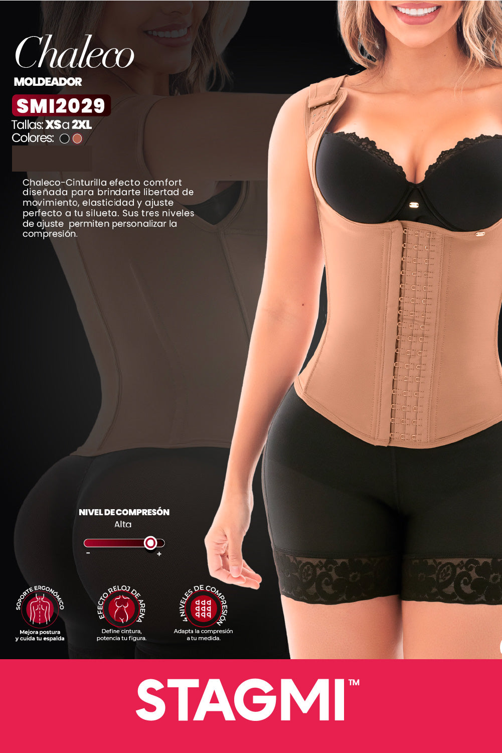 La Cinturilla tipo chaleco SMI2029 ofrece compresión personalizada en una sola prenda funcional y cómoda. Su diseño incluye espalda alta, ideal para corregir la postura mientras moldea y define la cintura. Con 4 niveles de ajuste frontal, puedes personalizar el nivel de compresión de forma progresiva.