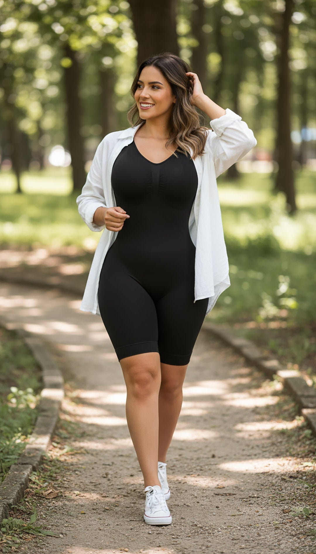 Diseñada con tecnología Seamfree, esta faja tipo sisa de media pierna proporciona compresión suave desde el abdomen hasta los muslos. Su mapeo estratégico en zonas clave ayuda a moldear la figura, disimular la piel de naranja y brindar un efecto lifting natural. Gracias a su tejido con origen, ofrece un ajuste cómodo y transpirable que se adapta como una segunda piel sin marcar bajo la ropa.